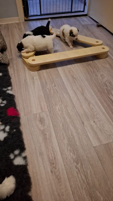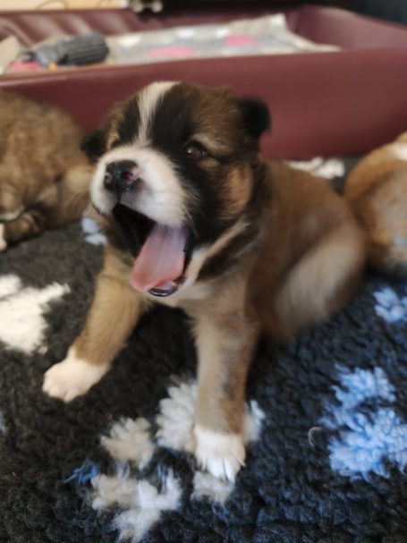 Wir nähern uns der 2 Kilo- Marke und es wird immer mehr gespielt und Geschwisterchen geärgert. Aber auch der Schlaf kommt nicht zu kurz und der erste Welpenbrei wurde probiert. Am Wochenende hatten die Mäuse den ersten Besuch von Ihren zukünftigen Familien und haben im Sturm die Herzen erobert.