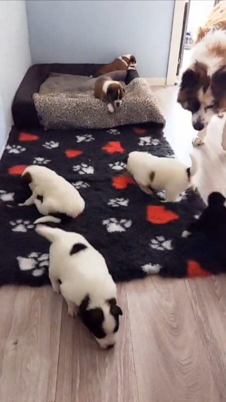Josy´s Welpen entwickeln sich prächtig. Sie werden immer selbstbewusster, ihre zukünftigen Familien haben viel Freude an der Entwicklung der Zwerge. Josy säugt sie immer noch regelmässig, aber natürlich gibt es auch schon Welpenbrei.