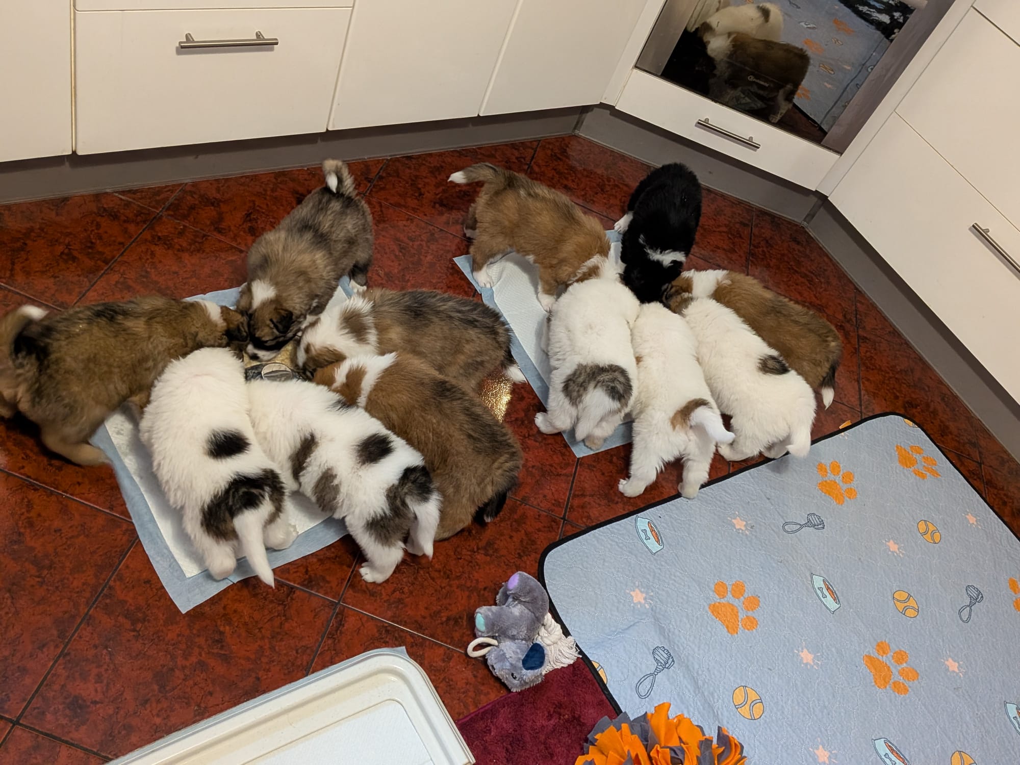 Josy hat am 27.12.2025 12 zuckersüße Welpen zur Welt gebracht, 3 Rüden und 9 Hündinnen.